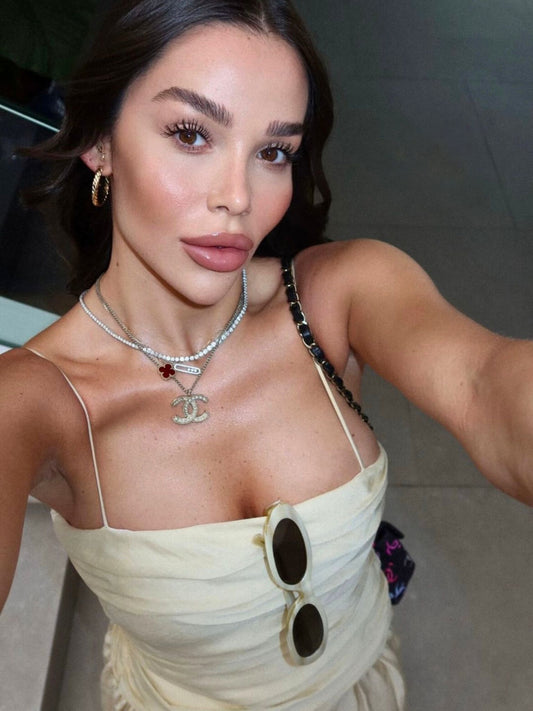 Set "Sofia" Ohrstecker, Halskette mit Zirkoniasteinen - 18k vergoldet