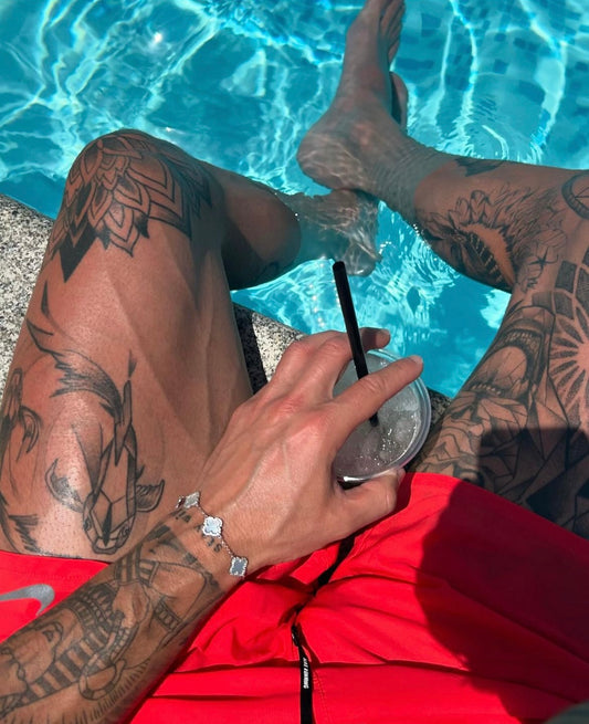 Herren "Leo" Kleeblatt Armband, weiss - 18k vergoldet