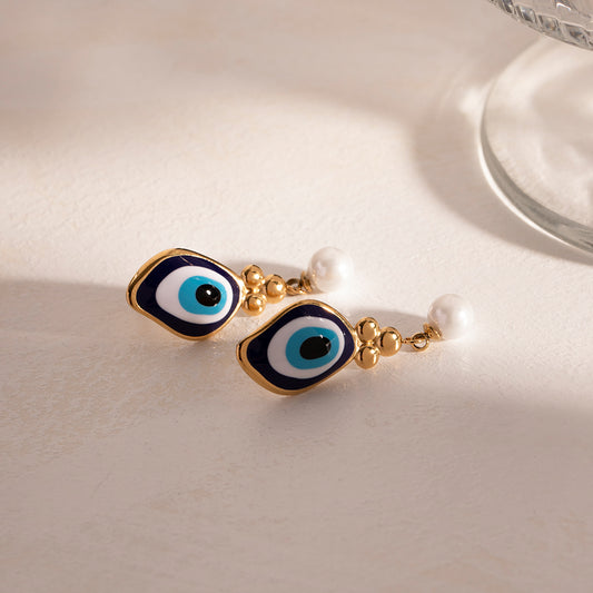 Ohrringe "Naz" Evil Eye mit Perle in Edelstahl - 18k vergoldet